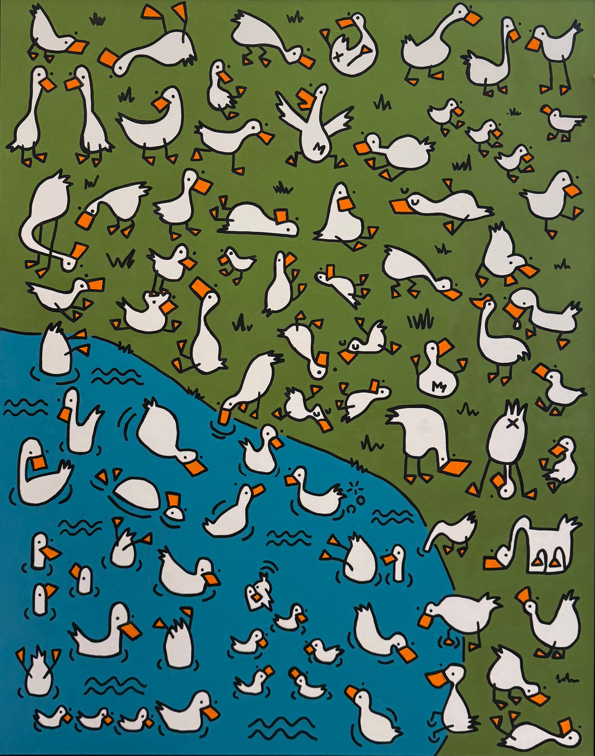 Inspired by the local ducks at Congress Park and Where's Waldo, this piece contains 81 ducks and 1 goose (try and find it).